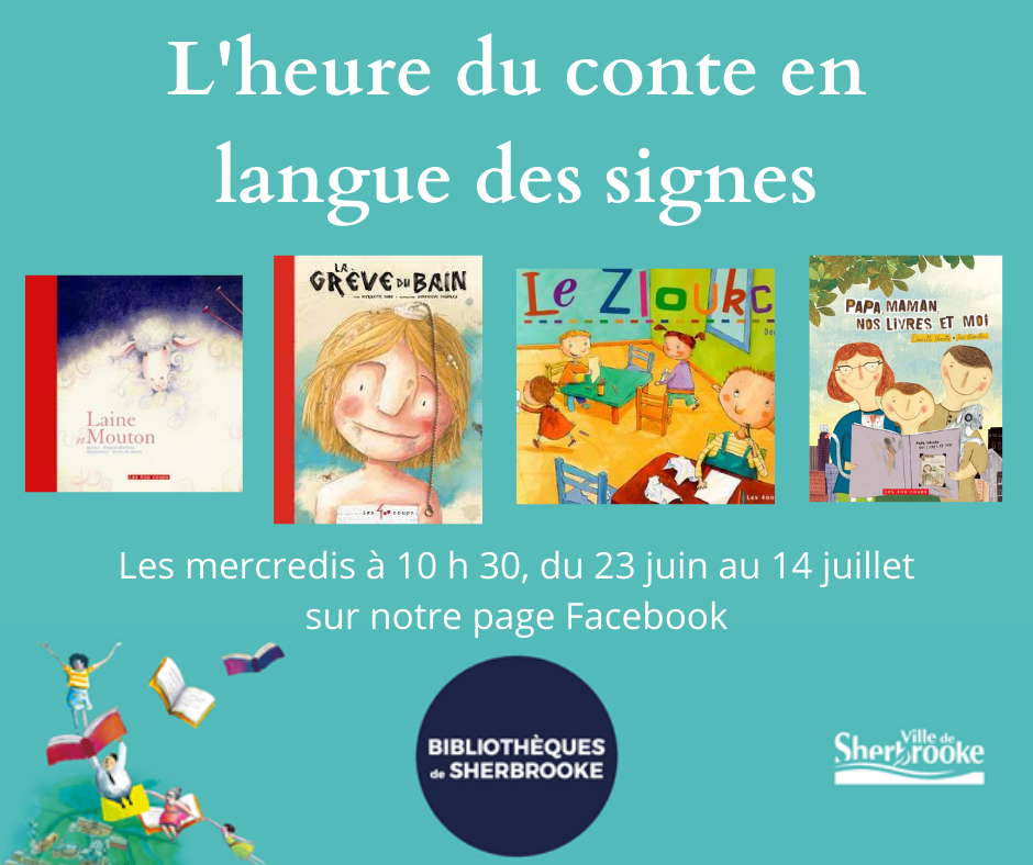 Lors des mois de juin et de juillet, vous avez pû voir, sur la page Facebook des Bibliothèques de Sherbrooke, des heures du conte présentées en LSQ.