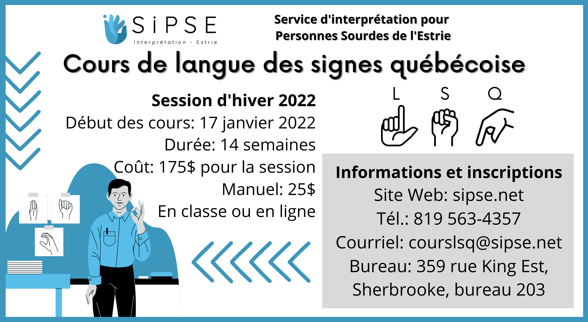 Cours de langue des signes québécoise - Session Hiver 2022