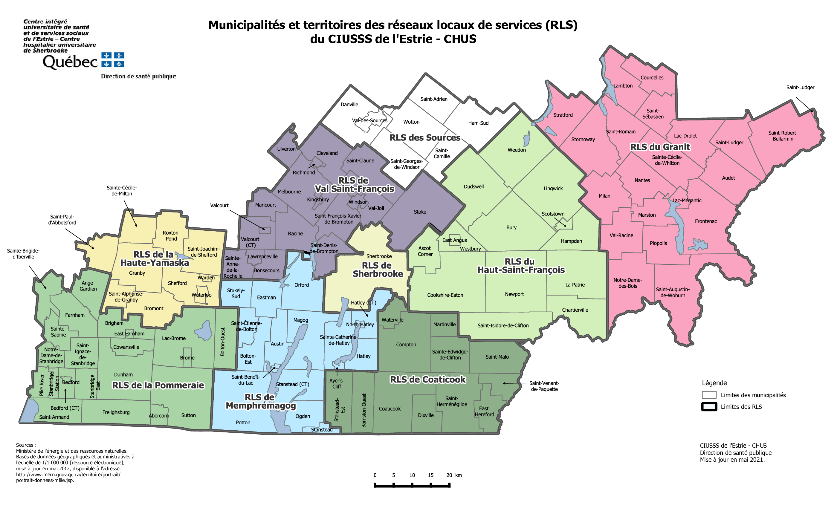 Couvrir la région de l'Estrie (voir carte).